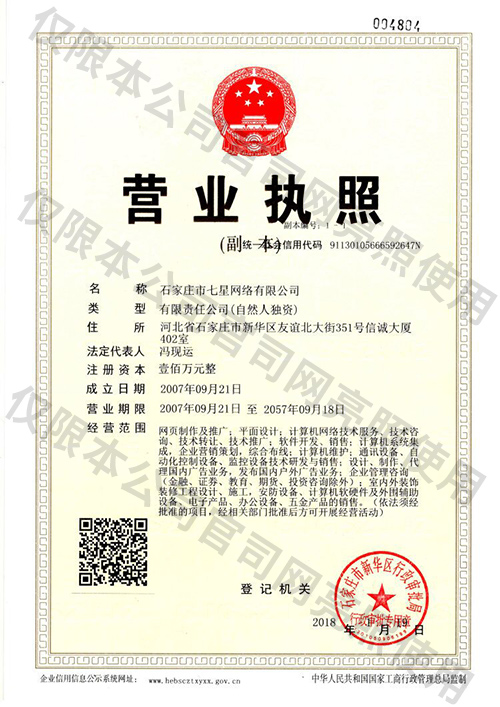 Copyright © 2007-2021 石家莊市七星網(wǎng)絡(luò)有限公司 營業(yè)執(zhí)照 冀ICP備07502573號-1 冀公網(wǎng)安備 13010502001904號